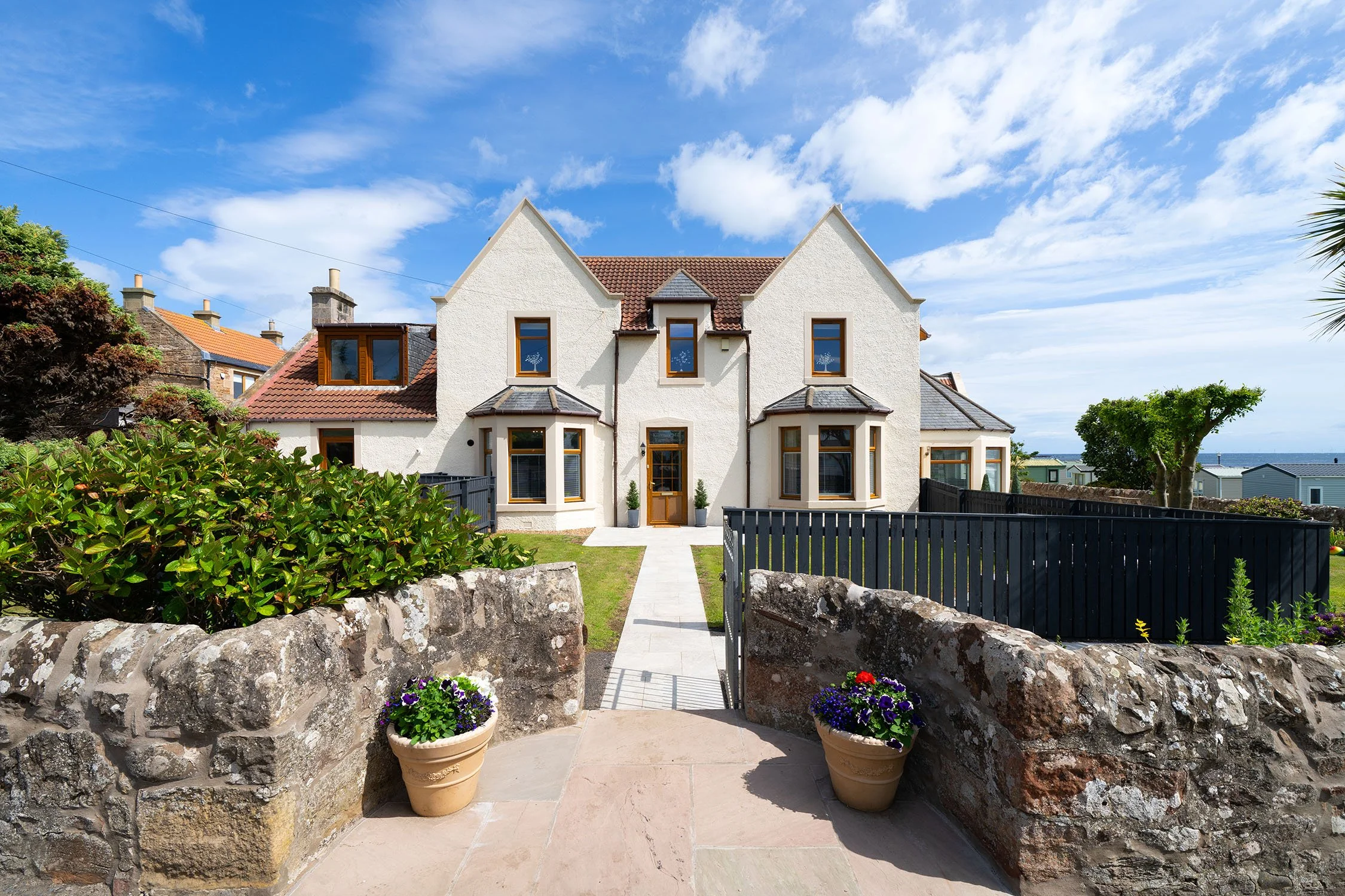 A stylish three-bedroom coastal retreat with uninterrupted sea views, designed for relaxed East Neuk escapes near St Andrews.